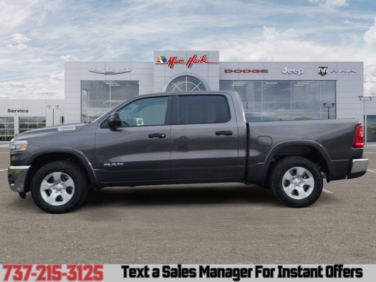 Meet the 2026 RAM 1500 Big Horn/Lone Star — finished in striking Gray with a Black interior, it’s the perfect blend of rugged capability and refined comfort. Standard 4WD, ABS, traction control and full airbag protection give you confidence on any road, while keyless entry, remote start, dual-zone climate controls and heated front seats keep every drive comfortable. Top it off with navigation, a power sunroof, run-flat LT275/65R18 tires and a suite of driver aids like electronic parking assist and tire pressure monitoring. Seating for five and roomy interior dimensions make it work-ready and family-friendly — stop by for a test drive today and let me show you what this RAM can do.