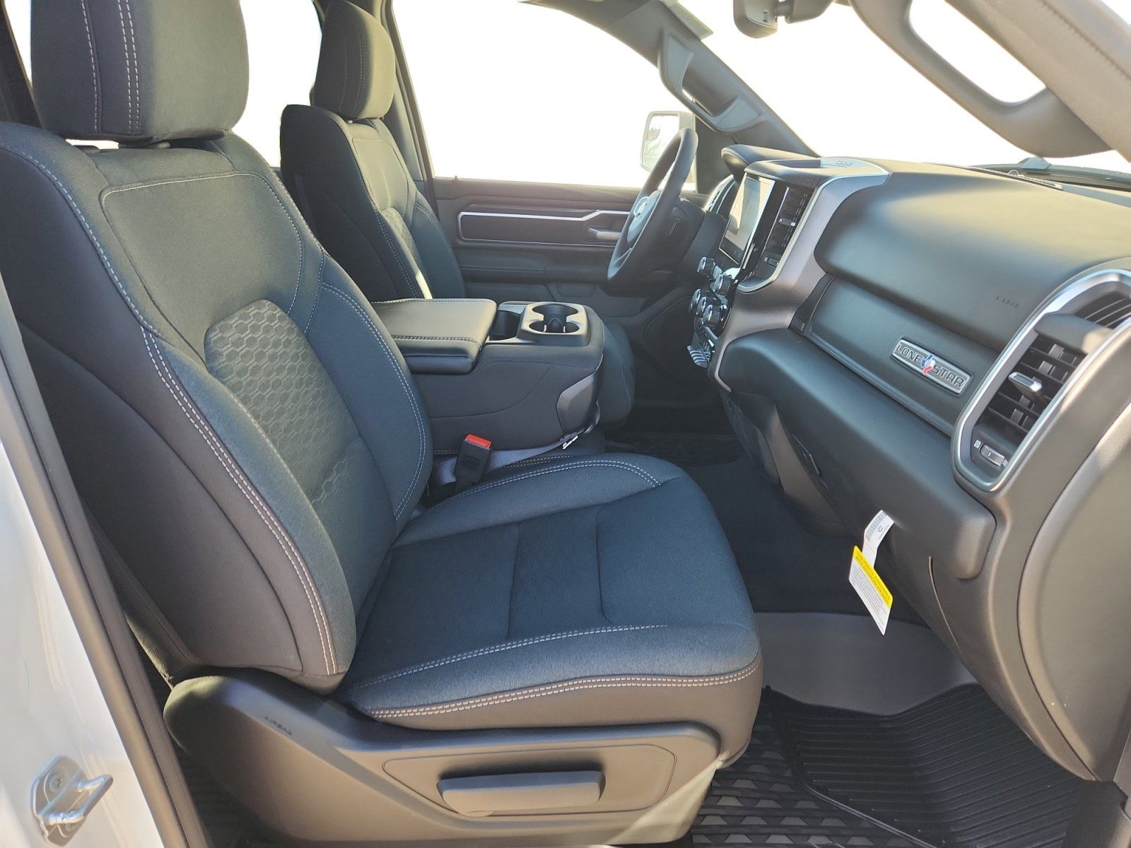 Meet the 2026 RAM 1500 Big Horn/Lone Star — finished in crisp White with a sleek Black interior. This truck blends rugged capability with everyday comfort. - Ready for the job: standard 4WD, LT275/65R18 run‑flat tires and a sturdy coil‑front/leaf‑rear suspension. - Confidence on the road: ABS, electronic brake assist, traction control, stability control and a full suite of airbags. - Comfort & convenience: roomy 5‑passenger cabin, keyless entry, remote start with climate control, dual‑zone air, cruise control and steering‑wheel controls. - Smart touches: automatic headlights, daytime running lights, tire pressure monitor and an easy-to-use AM/FM radio and trip computer. Tough, safe and comfortable — the RAM 1500 Big Horn/Lone Star is ready to work. Stop by today for a test drive.